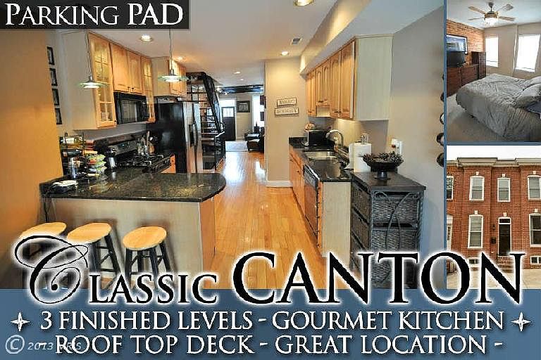 STYLISH LIVING SPACE W/ 3 FINISHED LEVELS - ROOF TOP DECK & EASY PARKING! This home features wood floors, large kitchen w/ granite counters & separate dining area, ss appliances, exposed brick, open stair risers and finished basement all within walking distance to Canton's best attractions. Upper level features 2 bedrooms w/ 2 full baths and hallway access to rooftop deck.