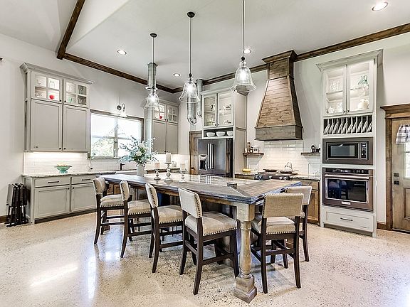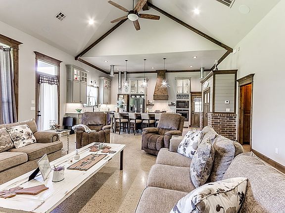 This is a must see custom home with all of the extras!!! Great views. Large Everything, large living, large main bed and wonderful spa style bath. 3.33 Acres mol Cathedral Ceiling High ceilings throughout Saferoom Plenty of Storage Private with lots of trees Kitchen aid Black stainless alliances Double ovens Gas Stove Farm sink Central heat and air Tankless hot water heater Foam insulation Water Filtration System Spa bath His and hers showerheads Claw foot tub 2 zone surround sound Granite counter tops and window sills Gas heat Septic Blanchard City Water