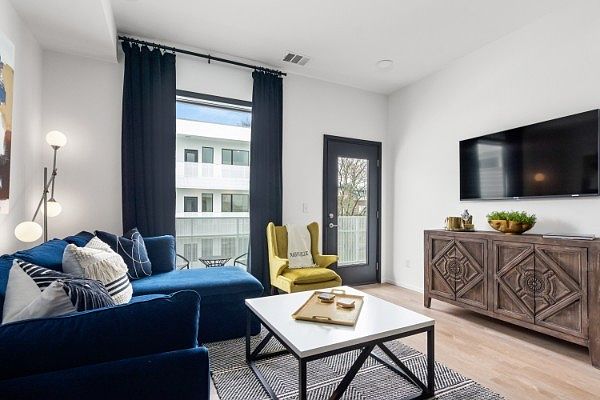 short term rental 2 BR condo at Illume in the Gulch. Home showcases green features & cutting edge architectural design. Luxe amenities include landscaped courtyard & pool. Professionally decorated, high ceilings, & private balcony. Modern kitchen w/stainless appliances. Master BR features direct access to BA w/walk-in shower. Sliding barn door leads to 2nd bedroom w/twin bunk beds. Blocks from Downtown. Gym, pool, dog pad & shops on site! Second BR can be a perfect home office