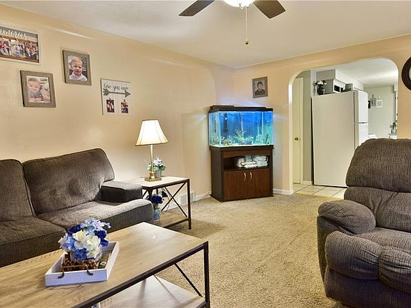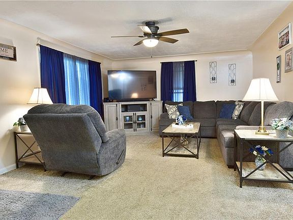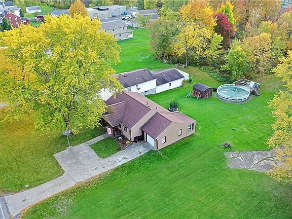 This lovely Girard ranch has it all, with a total of four bedrooms to include a lower bedroom in its finished basement! Make sure you take a second look as there's plenty to offer like an available backyard pool and a relaxing, screened in patio to take in the backyard views. Step through the front door past the covered patio to enjoy a spacious welcoming, carpeted living room with large picture windows that illuminate the living space. A combined kitchen and dining area sit opposite as tiles flooring pairs with the long running charcoal countertops and plentiful gray cabinetry. Hidden attic access divides the kitchen from the main hall, where three sizeable bedrooms join a full first floor bath with a stylish tiled shower and tasteful vanity. Each bedroom is nicely sized and offers great closet space. Downstairs, a central recreation room overlooks a casual dining area and expansive lower bar; perfect for entertaining. A second full bath awaits just around the corner while the fourth bedroom allows for an easy lower living suite. In the far corner, the laundry room gives way to additional storage and utilities. You will also find walk-out access to the large backyard and screened in patio. Additional features include: roof 2012, hot water tank 2015, vinyl replacement windows, kitchen appliances stay, and a one year home warranty!
