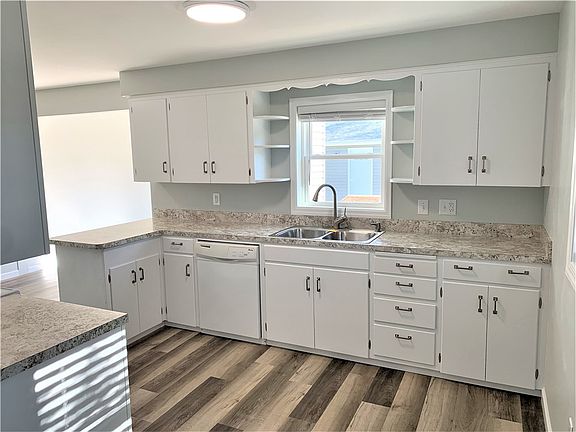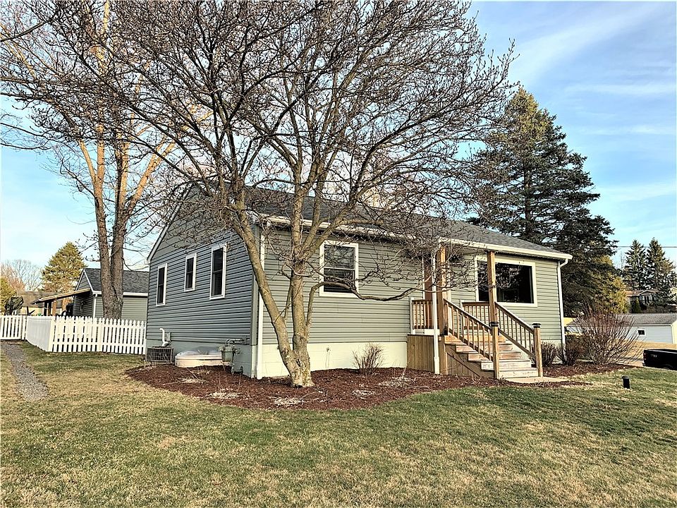 Attention to detail in this adorable 2 bedroom ranch situated on over an acre--New siding, doors, windows, insulation & more--Updated kitchen and bath--Interior & exterior french drain professionally installed with battery back up, studded walls with insulation and a escape window---Lower level is also plumbed for a full bath and includes toilet and shower on site--Lots of windows for natural light--Roof 2021--Covered gutters 2022--Exterior drainage system is connected to downspouts--Skylight in hallway--Kitchen faucet has electronic on/off--Color changing lights in kitchen/din/hall areas--Rear yard has 2 fenced in areas--Spacious side deck and level yard--Garage has new doors and concrete floor in 2015...also insulated walls & gas heat..storage above--tons of parking !!!!