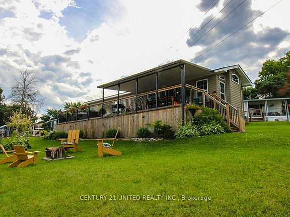 Looking for that perfect get-away spot? Here it is! This fantastic 2019 Holiday Trailer featuring 2 great sized bedrooms one with Queen bed in primary and bunk beds in 2nd bedroom. Plenty of storage, fireplace, kitchen island, garden shed, 10x45 partially covered deck and a new awning for added protection from the sun. Just below is a wonderful fire pit area for telling stories and making s'mores. This wonderful Parkbridge cottage and RV Resort features 2 pools one for adults and one for families, mini-putt course, dog park, trampoline area, boat launch and with Chemong lake at your fingertips with miles and miles of boating pleasure. This home has been meticulously cared for and it shows inside and out. Whether you are entertaining on the patio or inside there is plenty of room to enjoy your family and guests. Come and sit on the gorgeous deck and watch the sunrises as they come up on Chemong lake. This unit includes a golf cart for all your travel needs inside the park! Once you arrive you won't want to leave! Annual fees May-October $5,825.00 + HST subject to increase