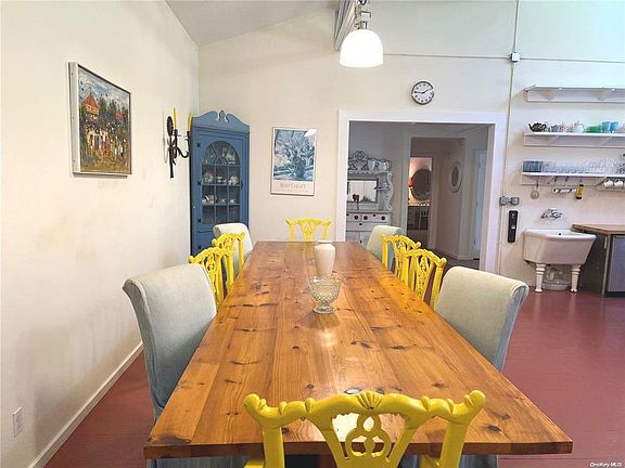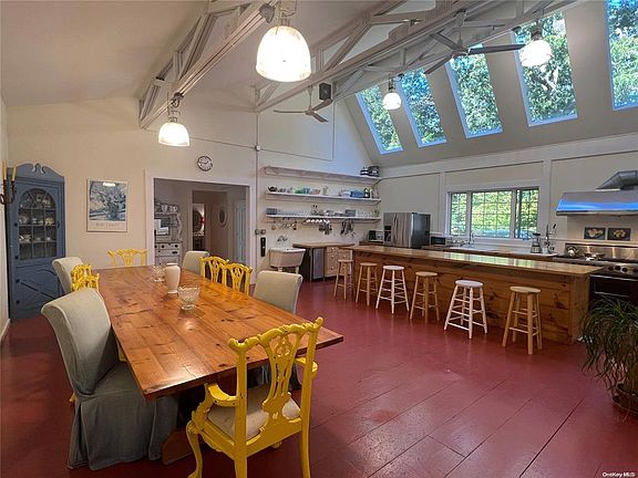 Water View Red Barn in East Hampton -This unique and charming property combines the rustic charm of a barn with the coastal beauty of The HAMPTONS Panoramic Harbor views instantly captivate you. The spacious interior holds soaring ceilings throughout with 2 living rooms, 6 bedrooms, 5 1/2 baths, professional chef's kitchen, central outdoor atrium, 2 fireplaces, and water view balconies. There is excellent natural light from a double height ceiling with skylights. Located in the heart of the artist community of Springs and just moments to the historic Pollack museum, iconic Springs General Store, legendary Ashawagh Hall, waterfront restaurants, galleries and studios. The area holds many pristine Bay beaches for boating, kayaking, paddle boarding and magnificent sunsets. A uniquely special offering in a magical setting. The property surrounding the barn is meticulously landscaped with native plants and beach grasses, creating a natural and low-maintenance environment. The outdoor space includes a patio and deck for outdoor dining, a fire pit for evening gatherings, and a path that leads to the waterfront. The waterfront Red barn in East Hamptons is a true gem, offering the best of both worlds - a historic, rustic charm coupled with the serenity and beauty of the coastal lifestyle. It provides a perfect setting for relaxation, while still maintaining proximity to the vibrant cultural scene and upscale amenities that the Hamptons are known for., Additional information: Appearance:MINT,Interior Features:Combo Kitchen,Efficiency Kitchen,Guest Quarters,Lease Term:12 Months,Memorial-Labor, Interior Features:Separate Thermostat