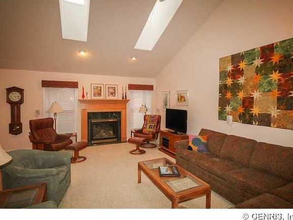 Stunning contemporary ranch w/cathedral ceilings, skylights, hardwood flooring, open floor plan, spectacular 4-season room overlooking forever wild! Master suite w/shower & Jacuzzi in a wing of its own, office w/built in desk & cabinetry, incredible 13 course professionally finished basement w/daylight windows & slider to patio, crown molding, hardwood flooring, gas stove, full bath, additional bedroom currently used as a quilting room! Custom wood working shop w/exterior door & daylight window! Very private setting-incredibly well maintained by original owners! Over $63,000 in upgrades!