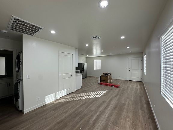 Beautiful 2 bed, 1 bath "cottage" w/ solar & high efficiency AC! Units do not share any walls! Generous great room w/ stunning kitchen that overlooks the dining & living space. Beautiful quartz countertops in the spacious kitchen w/ plenty of cabinet space, walk-in pantry & stainless steel appliances (fridge included)! Appreciate luxury vinyl plank flooring & window blinds throughout. Washer & dryer are conveniently included within the unit. Lovely backyard space to enjoy as well. This energy efficient building comes fully equipped w/ 11 solar panels that produce roughly 4,000 KwH a year, high efficiency AC & heat pump, energy efficient windows, fire suppression system, 2x6 construction w/ R-19 insulation in walls & R-38 in the ceilings and EV charger. The unit is all electric. Tenant to pay water, garbage & power.