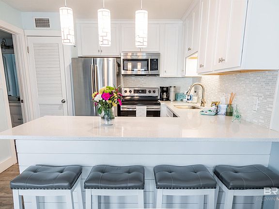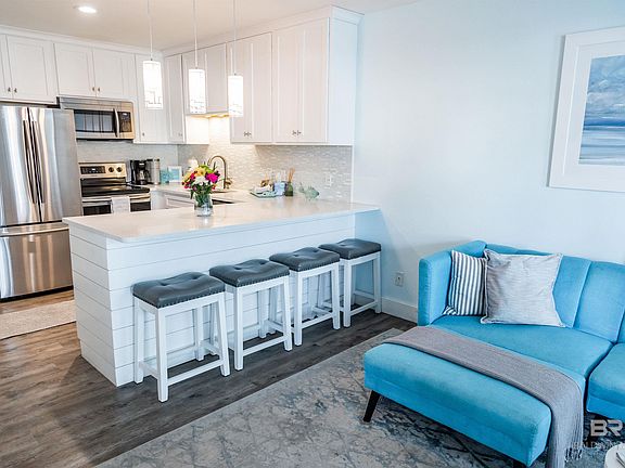 Welcome to your dream beach condo! Look no further than this stunningly renovated, and impeccably decorated lagoon-front unit nestled in the heart of Gulf Shores. Every detail has been carefully curated to provide the ultimate coastal living experience.Step into the fully upgraded kitchen boasting brand new cabinets, quartz countertops, stainless steel appliances, charming shiplap accents, and a stylish glass backsplash. The spacious peninsula offers seating for four, perfect for entertaining guests or enjoying casual meals with loved ones.The inviting living room and bedroom are flooded with natural light, creating a serene atmosphere enhanced by the new luxury vinyl plank flooring throughout.At The Cove, you truly get the best of both worlds. Situated a very short distance to all that Gulf Shores has to offer, this condo also provides exclusive access to Little Lagoon. Take advantage of the boat ramp and fishing dock just a short stroll away, or head to the pristine white sandy beaches for a day of sun and surf. Indulge in resort-style amenities including a sprawling pool, charming gazebo, convenient BBQ area, and assigned covered parking. With restaurants, entertainment, and shopping all within a short distance, convenience is at your fingertips.Looking to generate income? This unit is a rental machine, offering incredible potential for maximizing your rental revenue. Close today, rent tomorrow—don't miss out on this exceptional opportunity. Act fast, as this sought-after unit won't stay on the market for long!All information is either estimated or obtained from tax records and must be verified.Equal housing opportunity. Buyer to verify all information during due diligence.