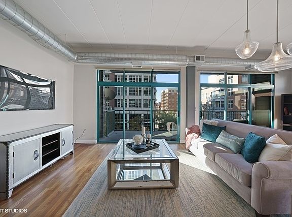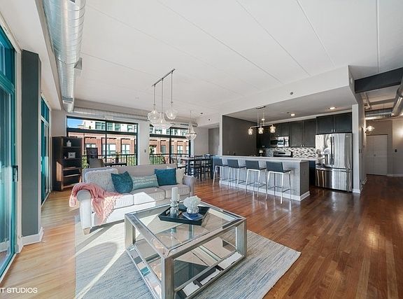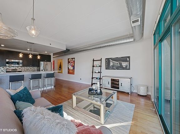 Life in a West Loop mid rise has it's advantages and this beauty offers additional reasons to make it home. This sunny southwest corner home, the larger of the 2bed floorplans features a 27' living room arranged in such a way to allow two spaces, currently set up as living and office. A 48' wrap around balcony connects you with the neighborhood with a birds eye view and has tons of light from the floor to ceiling patio doors that allow entry at all points of the balcony space. An open concept kitchen with an oversized island offering seating for 5, finished with a neutral quartz counter with upgraded finish. Entering the home you'll find a large gallery wall, you'll notice the soft loft feel, 10' ceilings and exposed duct work that makes this home special. On the opposite side of the living/entertaining space you'll find the main bedroom and bath with dual vanities, double width shower and an organized walk in closet with barn door. The guest bedroom is finished with an organized closet. Custom lighting throughout. Deeded parking and full size storage are included. The location can't be beat. Starbucks, Whole Foods, Mariano's, Monteverde, Parlour Pizza, Mary Bartelme Park, Girl and the Goat, Au Cheval, the Loop all within a 5 minute walk.