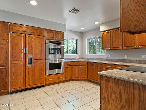 Enjoy the stunning sunset views from this beautiful Santa Barbara style home. Located in the highly sought after Mariposa Heights community, this home has charm, and quality craftmanship everywhere. The kitchen Is equipped with custom cabinetry, built-in Sub Zero refrigerator, Thermador cooktop, and double built-in ovens. Enjoy cleaning up with the SW views out of the kitchen sink windows. Huge walk-in pantry for a surplus of storage. Overhead cabinets have glass and built in lighting. Granite countertops and a kitchen island make this a dream kitchen. Great curb appeal with the low-maintenance landscaping and window/patio arches. Split floor plan with a spacious primary bedroom and an en-suite having a seperate tub and shower, large walk-in closet. Backyard has numerous huge mature tree