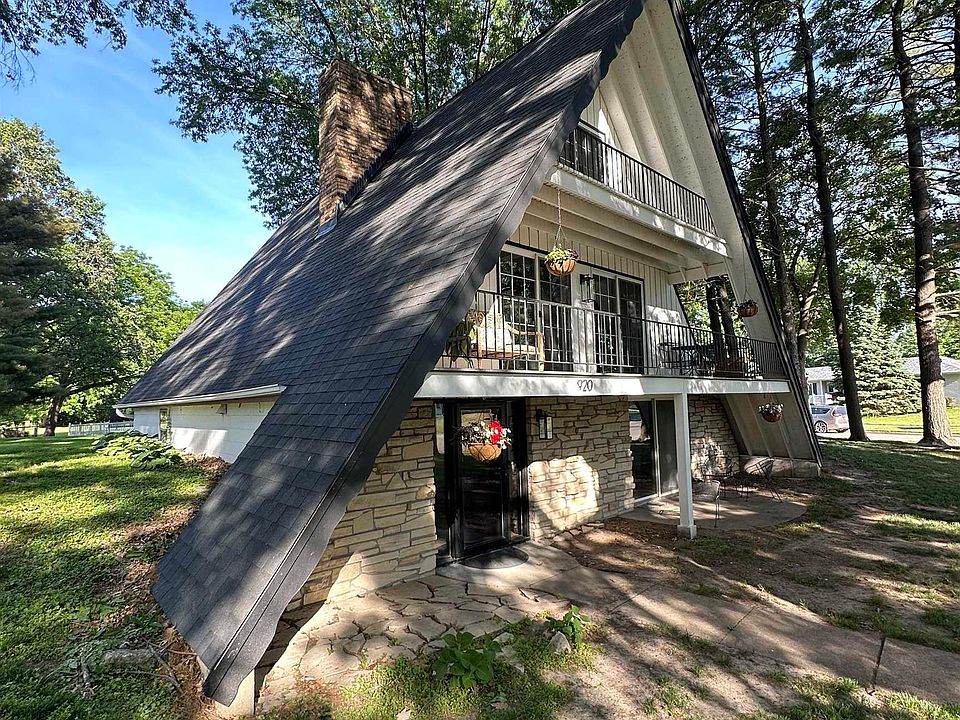 Rare opportunity! Four-bedroom A-frame home nestled on a corner lot with mature trees will have you saying WOW! Multi-level decks and a main level patio invite you into this charming home! Updated modern kitchen with stone countertops, soft close cabinets, & tiled backsplash. Open living/dining room with wood beamed ceiling and wood burning fireplace. Two bedrooms and a full bath on the main level. Upper level offers two additional bedrooms plus a full bath. Lower level features a family room, office (possible 5th bedroom), and half bath with laundry. New furnace & central air in 2020 and new roof in 2022!