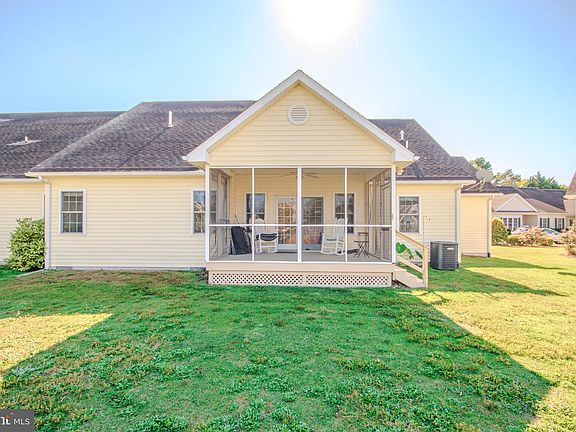 Entrance to Mallard Landing Retirement Community shows a well-planned area that is the welcoming to a comfortable environment. It shows why it is the Salisbury's # 1 retirement community. The elegant Clubhouse is surrounded by condo Buildings and cottages with the convenience of Lakeside Assisted Living on the campus. Turn right on Winding Way and 920 cottage is on your left , inside and outside awesome view of the pond. The concrete driveway Leads into two car garage . Walking up the sidewalk with the mature landscaping meets the cozy front porch to enjoy anytime. Entering the Foyer, you will find a double closet on your right and to your Left is a special dining area with lots of Light. A breakfast bar separates the dining area and (kitchen). The kitchen features sleek, creating a seamless and polished Look. The cabinets add a touch of elegance and warmth. Newer stainless steel appliances enhance the modern feel offering both functionality and style. The hardwood flooring ties everything together, providing a durable foundation for sophisticated space. The hardfloors are through the cottage, With Large living room with the 9' ceiling, Entertaining a Larger group of friends is possible as you can open the French door Leading to screened porch. Everyone will be jealous of the pretty view of the pond with a fountain. The right side of living room has hall Leading to the Spacious primary bedroom makes it ensuring a comfortable retreat. The ensuite bathroom features double sinks, and walk-in shower, A large walk-in closet offers ample storage and makes organization easy. Coming out of the primary bedroom, the hallway leads to a second full bath with walk-in shower and small Linen closet. The second bedroom, which could be great for office, or den, has double closet. On the other side of cottage by garage door is the utility room with new stack washer & dryer. This cottage has a den, giving another room for office or to watch a different TV show. Mallard Landing is Located 30 minutes from MD beaches, numerous golf courses, cultural event at two universities, several waterways for fishing, boating, sailing and swimming. The Clubhouse has numerous events and activities, dining room plus additional pub and bar area, exercise room, and library. HOA fees are $960 monthly( $1245 for two residents), Condo-Coop fees are $420 Monthly and individual meal plan for minimum of $180 monthly. Property is being sold AS IS. Make an appointment to visit this retirement cottage and community.