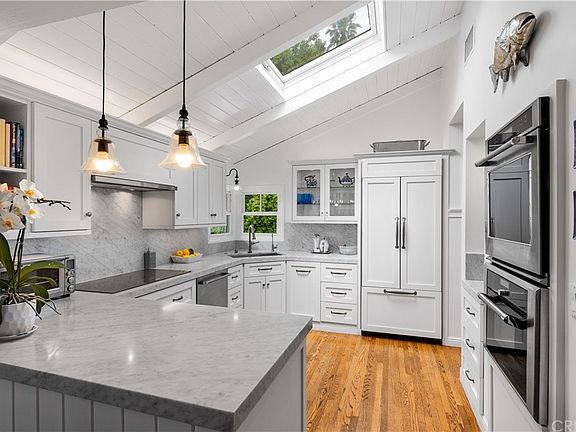 Not just a home....it's a lifestyle! Updated Coastal-Chic 1 story Ranch home with guest house, ultimate entertaining backyard & pool. The extensive collection of windows lends volumes of natural lighting and fabulous views at every turn of the stunningly lush backyard. Carefully crafted white wood details include vaulted ceilings, beams, bead board, tounge & groove, crown molding and more! Hardwood floors thru majority of the home. The updated kitchen with its white cabinets, carrera marble & stainless steel appliances features state of the art amenities that will dazzle even the most experienced of cooks! Line up includes induction cooktop, steam/convection oven, microwave drawer, built in refrigerator, touch-on faucet. Butlers pantry has beverage refrigerator, 2 refrigerator drawers & a wine nook. Kitchen and butlers pantry cabinetry designed with extensive use of drawers! Very private Master suite with sitting area, built ins, his/hers closets allows access and views of the lush backyard. En-suite master bath flooded with natural light offers large deep soaking tub, steam shower and his & hers vanities. Vintage dresser is one of many custom touches! Laundry room convieniently located in bedroom wing. Guest house has high beam ceiling, private bathroom with shower, kitchen with sink, refrigerator, microwave. Room for stove and table. Multiple windows and french doors provide stunning views of the yard. If you love to entertain and garden...welcome home!