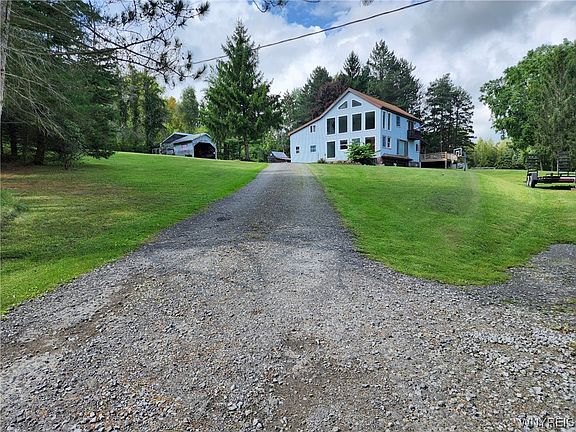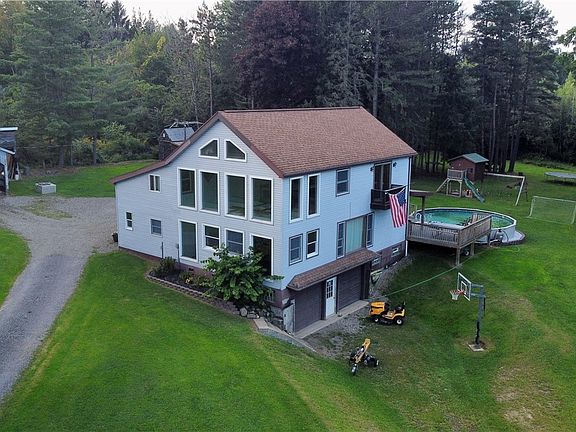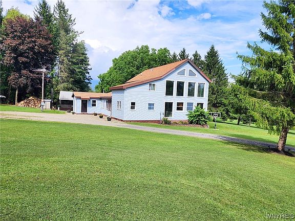 Come enjoy an absolutely idyllic picture of this country home on 3.08 acres! The property's serene setting & picturesque views of the natural surroundings, w/ its generous use of woodwork & abundant natural light, create a captivating & inviting atmosphere. The 1st floor's open concept, w/ a LR/DR combo, 2 bedrooms & 1.5 baths, offers both practicality & comfort. The nook w/ high ceilings & ample windows for enjoying the landscape is a cozy space for relaxation. The wooden beams in the kitchen allow plenty of light to shine through - a unique & charming detail. The floating staircase leading to the loft bedroom on the 2nd floor, adds a touch of character & spaciousness. The upstairs sizable master bedroom & bath w/ a deck, perfect for relaxing, is a highlight. Having a 2nd bedroom & a spacious laundry room on the 2nd floor offers convenience. The large deck leads to the above-ground pool & expansive backyard, along w/ breathtaking views, make this property a true hidden gem. A place where you can fully immerse in the beauty of each season & enjoy the peacefulness of country living. The sq. footage was measured by a real estate professional & the sq. footage is actually 2,556.