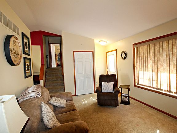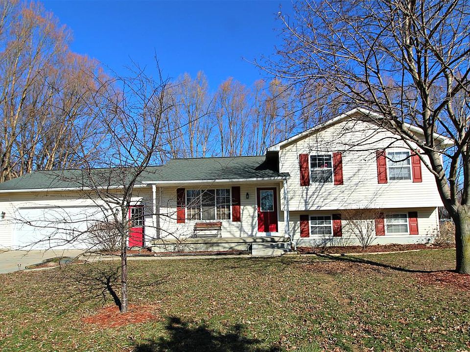 Cathedral ceiling living room and kitchen open floor plan. Day window family room with fireplace. Finished rec room with bamboo floor (2015). Updates galore in this home on nearly an acre. 20x20 barn plus 2 car attached garage has 2016 garage door and opener. Newer entry doors (2012), softener (2014), and bathroom (2015). Finished basement with workshop. Include: Playscape, fireplace, water softener and filtration system. Possession: 6/15/18.