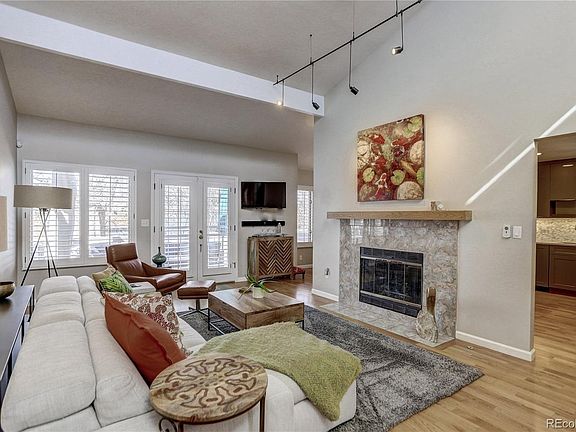Lovely Highline Club sun filled, end unit town home. The development is adjacent to the Highline Canal and Cherry Creek Trails- great for walking and biking. A great turnkey home in a smaller friendly sub-division. The unit has a large open floor plan. Upon entry you will be greeted with soaring vaulted ceilings and a living room anchored by a cozy gas fireplace and French doors leading to the recently expanded two level deck which hosts a casual seating/ dining area and a huge hot tub. The Kitchen was completly gutted and remodeled 2 years ago to include new stainless appliances, quartz counters, new fixtures, back splash and high end modern cabinetry of the highest quality. The 1/2 bath on the main was also redone at the same time as the kitchen. A huge 6 ft fan was installed over the living area to give great air circulation year round! The second level offers 2 en-suite bedrooms. The master is spacious with a south facing balcony and a 5 piece master bath with a large skylight. A large walk in closet completes the master retreat. A second bedroom has large closets and its own full bath. The basement has a large finished room used as an office (desk is included in sale) and an in home gym - all with new cork wood floors. The adjacent laundry/store room has almost new washer and dryer (incl) - plus the room offers ample storage space. Updates in the last 2 years include - new kitchen, new main level 1/2 bath, expanded deck approved by the HOA , new washer and dryer, cork floors in the basement, & fresh paint! The 2 car garage is attached to the unit and accessed from the main level. The HOA provides a community pool, tennis courts, pickle ball courts and a clubhouse. This unit is turn key and in perfect condition. PLEASE NOTE WHEN USING GPS TO SEE THE UNIT BE SURE TO ENTER THE ZIP CODE 80231 AS THERE ARE 2 OF THE SAME ADDRESSES ONE IN DENVER AND ANOTHER IN GLENDALE - GPS WILL TAKE YOU TO GLENDALE UNLESS YOU ENTER THE ZIP CODE.