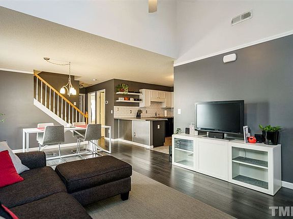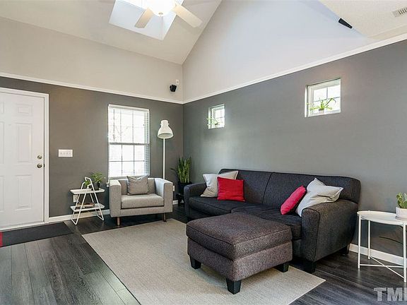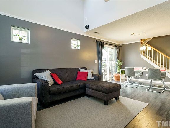 Urban, edgy, modern - 3 br 2 ba w/ that downtown feel w/o downtown prices! Yes those are concrete countertops! Updated lighting, high end laminate, ceiling fans, bathroom redo worthy of a magazine cover! Hip & practical too - new roof, newer appliances, HVAC, & for Rover - fenced in yard! Expanded patio ready for backyard parties. Low maint. brick & vinyl siding - HOA even cuts your front yard grass! 2 car spaces in driveway AND a garage? All yours! 540, RDU, Brier Creek & Leesville shopping close.