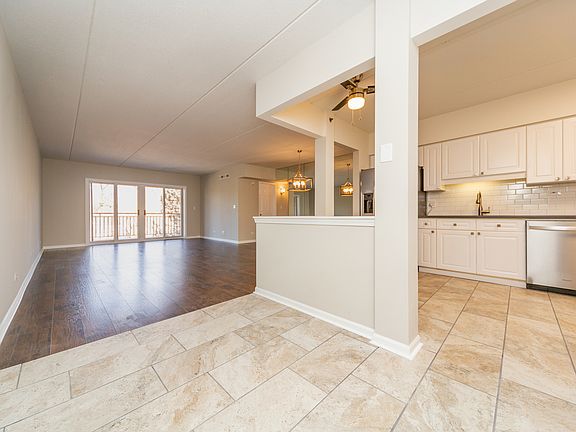 Everything you've been looking for! This sunny and spacious, 2 bed 2 bath, elevator accessible end unit has been completely refreshed! Fantastic open floor plan with gorgeous new wood flooring throughout! The combined living/dining room gives you awesome tree top views from one of two balconies! Huge eat-in kitchen w/ ample storage and updates including: white refurbished cabinetry, subway tile backsplash, Quartz countertops, SS appliances and new tile floor. Beautiful Master suite with large walk-in closet, updated bath complete with tub and separate shower, double sinks and linen closet PLUS a private east facing balcony perfect for your morning coffee! Separate laundry room with side-by side W/D. This two building, professionally landscaped, Enclave complex is pet friendly with easy access garage parking, ample guest parking and is just a short walk to Walker Elementary School. Assessment includes heat. Unbeatable location, and 100% move-in condition - the complete package!