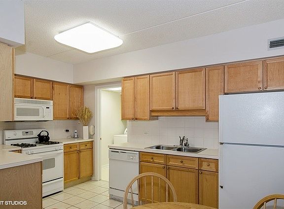 Outstanding, sunny end-unit at The Enclave Condominiums in a convenient location. Features a gracious floorplan with a large living room with dining area. Living room opens to the balcony facing north with great views. Open kitchen with excellent cabinets and counter space with table for an excellent eating area. Leads to utility room with cabinets and side-by-side washer and dryer. Room could also be used as a pantry, walk-in closet with plenty of storage space. Two bedrooms: Master bedroom suite features a walk-in closet, bathroom with vanity, separate shower, Jacuzzi tub with sizeable linen closet. Second bedroom features a wonderful tree-top view and great closet space, plus a second bathroom with tub. Guest walk-in closet. One car heated garage space with plenty of outside parking for guests. Well-maintained complex. Radiant heating. Easy commute to downtown Evanston. "A real Gem."