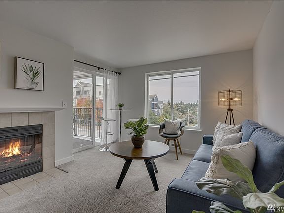 Located just a few short blocks from Greenwood's fantastic dining, coffee shops, grocery stores and shop near bus lines, this sunny SW corner unit is everything that's great about city living! This gem has a Walkscore of 81! The kitchen's breakfast bar looks out over the living/dining area and wood burning fireplace. There's also access to a great patio: perfect for relaxing and entertaining. Level gated entry with zero stairs to your condo, and secure garage parking with elevator access.