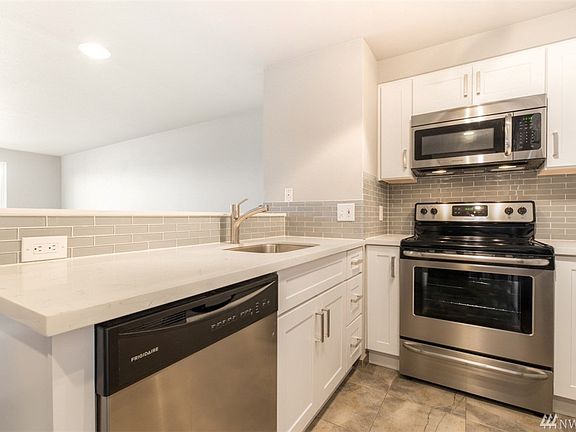 Upgrades not typically found at this price: Quartz Surfaces, Mosaic Glass Backsplash, New SS Appliances, Porcelain Floors, Soft Close Cabinets, Subway Tile Bath & MORE! Reserved space in garage & convenience of a dedicated bike lane/bus stop at secured bldg entrance. One of the largest patio spaces in the bldg w/peekaboo view of Olympics. Unit stays cool in summer and cozy in winter. Close to the intersection of Hip & Happening....Restaurants, Retail Shopping & Cafes, best value in Greenwood.