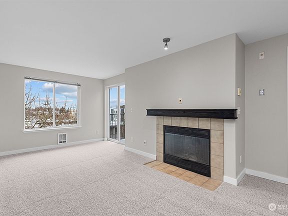 Ideally located near the heart of the Greenwood neighborhood, this condo has everything you need! Bright 1 bedroom unit boasts an open kitchen/living area with a fireplace, a private south-facing patio, brand new carpet and paint throughout + newer stainless kitchen appliances. Laundry hookups in-unit and reserved garage parking make city living a breeze. This unit is located on the top floor with with easy access via stairs or elevator. You'll be just a short walk from all the amenities of Greenwood, like local restaurants, breweries, and shops + close to I-5 and public transit. Welcome home!