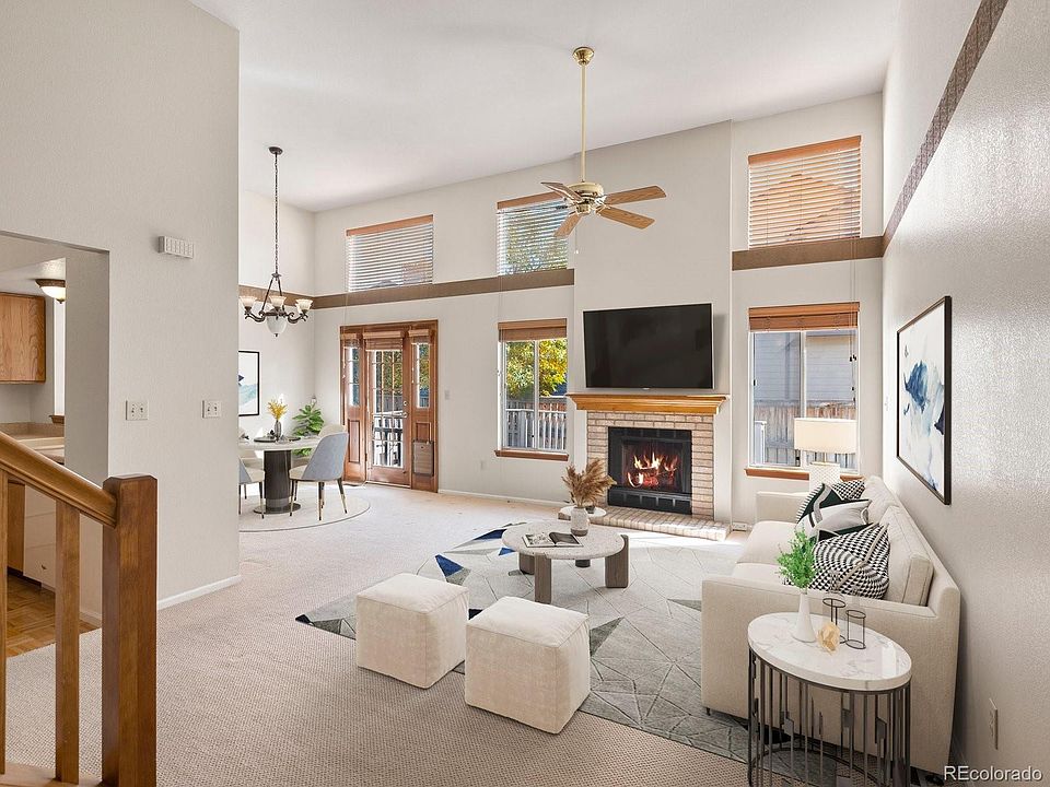 Welcome to this charming 3-bedroom, 2-bathroom home nestled in the tranquil and desirable Highlands Ranch neighborhood. With easy access to scenic trail systems and Northridge Elementary School just around the corner, this home is perfectly situated. The Northridge Recreation Center, along with numerous restaurants and amenities, are conveniently nearby. As you step inside, you'll be welcomed by soaring vaulted ceilings and several southeast-facing windows that flood the living, kitchen, and dining spaces with natural light, creating a bright and airy atmosphere. The dining area opens to a large, private back deck, making outdoor entertaining a breeze. The upper level features two bedrooms and a full bathroom, which is directly connected to one of the bedrooms for added convenience. The lower level boasts an oversized bedroom, a 3/4 bathroom, and a laundry area. This home offers ample space and potential for personalization, with updates that could significantly enhance its overall feel. It has great bones, a new furnace installed in 2023, and is attractively priced to allow new owners the opportunity to customize finishes to their liking. Don't miss the chance to live in this highly sought-after Highlands Ranch home!