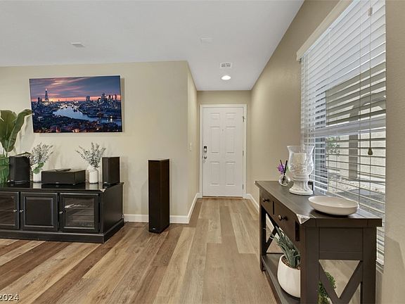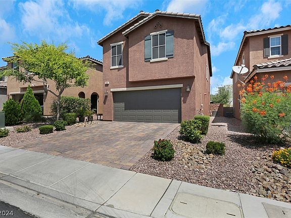Absolutely stunning & well maintained 3 bedroom/2.5 bath two story with 2 car garage in quiet Las Vegas neighborhood. Home is highly upgraded with open floor plan & abundant natural light. Security screens Master screens on all windows/slider downstairs,. New insulated garage door and epoxied garage floor. Community amenities include a pool/spa, park & workout facility. Well landscaped front & backyard with gazebo & covered patio. Pavers. Synthetic grass. No neighbor behind you. Spacious kitchen with custom shaker cabinets and huge granite breakfast bar. Tiled backsplash, pantry, and stainless steel appliances, Custom tiled accent wall, Luxury vinyl planking throughout the downstairs. Carpet is throughout the upstairs. Washer, Dryer and Refrigerator are included. Good sized loft with wood accent wall and walk in closet. Primary suite AC zoned independent from the rest of the upstairs. Custom walk in closet. Water/Softener/purification system. Will not last long at this great price!