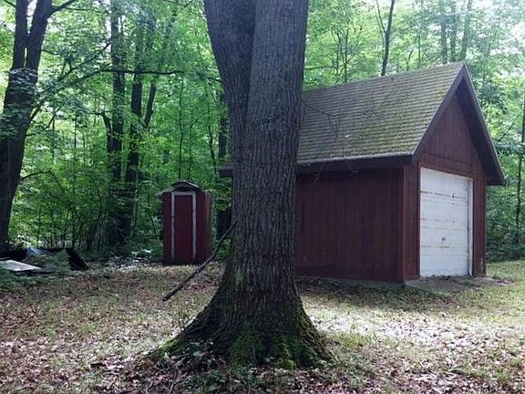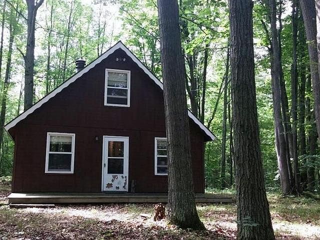 Over twenty wooded acres to hunt, ATV, walk and explore the wildlife. Nice chalet style home with big wood fireplace to heat the indoors.