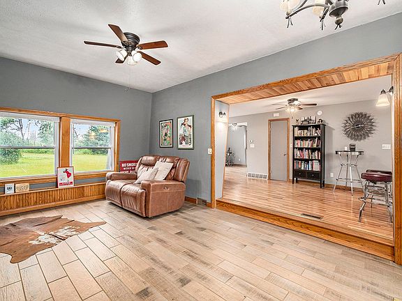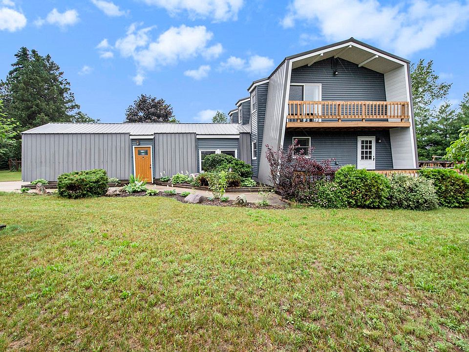 Discover this picturesque country retreat offering 3 bedrooms and 2 bathrooms, including a primary suite with a private bath and walk out balcony. Embrace the spacious large deck and three outbuildings: a barn with a loft and garage, a workshop, and an insulated "she-shed". Situated on 3.25 acres, the property features exterior housing for a 220 backup generator and a garden area. Enjoy the convenience of main floor laundry, a versatile fourth room perfect for an office or walk-in closet, and open concept living flooded with natural light offered by the dual paned windows. Additional amenities include a heated garage, unique exterior design, and a corner lot setting. Experience rural tranquility with modern comforts in this exceptional home!