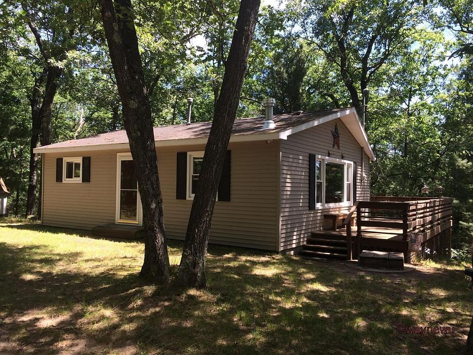 Cottage for sale in Baldwin Michigan. 9200 S. Mac Rd. Fully furnished turn-key luxury cottage with deeded access to Cecilia Lake. Set within the peace and tranquility of the Manistee National Forest, this 1/2 acre private, oak and pine wooded lot has room for all of your toys, and is just minutes from world class, year-round fishing, hunting, canoeing, hiking, ATV/ORV trails, snowmobiling, and golfing. This is not your typical cottage; this 2 bedroom/1 bath open floor plan is a show-stopper.