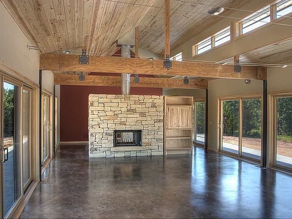 This beautiful modern country 2,500 sq.ft home has 3 bedrooms and 2 baths plus bonus room for play area, projects or meditation/yoga - all rooms with wonderful views of the large front & back yards. Cook in a gourmet kitchen with top of the line stainless steel Thermadore appliances in an open kitchen, having coffee & conversation at the bar with easy flow to the dining & living area. Radiant heating concrete floor throughout makes it more comfortable to walk on. The gorgeous rock split fireplace allows you to relax by in the living room or make the bonus room that much more of a desirable place to be in. The master bedroom, which can be closed off with beautiful Shoji Japanese doors, offers a large walk-in closet with built in chest of drawers & storage cabinets as well as your own access doors to the porch. The master bath has a unique concrete counter, Shoji Japanese doors and a walk in shower that will make you feel like you are outdoors! Anderson double pane windows & doors throughout allow you to sit & enjoy the wildlife & bird watching from any room including the porch that surrounds the house to take advantage of those beautiful Oklahoma sunsets as well. The walk-in pantry, also doubles as a safe room. The laundry room is furnished with a washer & gas dryer with plenty of storage. The possibilities are endless on the 80 acres whether you are a hiker, hunter, fisherman, for recreation. gardening in the 3 raised beds, riding your horse or just enjoy the outdoors, there's something for everybody! 6 acres fenced off with 2 pasture areas that allow plenty of room for livestock. Large animal shelter with locked storage room, electric & water would be great for show animals. This is a must see - very quiet & peaceful!! ARCHITECTURALLY DESIGNED, ENGINEERED & CRAFTSMAN BUILT:<br> We call this the “Elements Home” not only because it brings the outside in but also because it was designed for the extreme elements of Oklahoma. Best described as “Pacific Northwest” architecture that features open floor plans and spacious windows, the house also incorporates these design elements: Post & Beam sandwiching steel beams that are engineered to provide the home immense stability from high winds and even earthquakes. A steel beam also runs the entire spine of the home and connects to the skeletal steel that runs down through the exterior walls to the foundation. Outdoors-In design allows the house to open to outdoor rooms with over 14 sliding glass doors, including two that open 8 ft. on either side of the house and include screen doors for wonderful cross ventilation. All sliding doors are double pained, high efficiency with floor pins for security. Two additional doors allow for easy entrance and access at the entrance and master bedroom area. Large windows provide grand views of the surrounding woods and are also double pained for energy efficiency. The homes overhangs are specially designed to only allow sunshine to penetrate during the winter months only and serve as a passive solar collection to reduce heating bills during the winter months. Protected from the Elements with the thickest gauge metal roof that reflects the sun’s rays and fire, corrugated metal siding that is acid washed to take on a patina that blends with the elements and protects from fire, along with top paint designed to not fade or scratch. A six foot concrete fire barrier porch runs the length of the home and 10 foot patios extend off the ends to provide relaxing patio areas. The interior of the home also features stained concrete, perfectly warmed by radiant floor heating throughout the house. An F4 above ground tornado shelter also serves as the pantry just off the kitchen, with a lockable steel door for valuables, this 8 foot by 6 foot 3/8 inch steel shelter provides more than enough space for family and animals. video https://www.youtube.com/watch?v=PW6iaMu099o