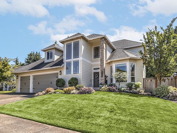 Gorgeous home located in one of Tualatin's most popular cul-de-sacs. Next to Tualatin High School & near Byrom Elem. 4br + den.Light & bright w/high ceilings & many windows. Vaulted living room has bay window. Kitchen features induction range w/double ovens. Fenced bkyrd in private setting has large patio & big deck. 3-car oversized garage w/storage. Refin hrdwds (2018). Nest thermostat. New siding (2018). Gas water heater (2022). Gas furn & A/C (2019). Auto sprinklers.