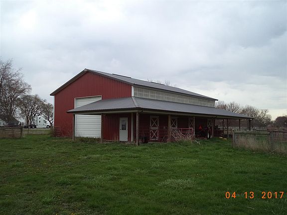 Here is an opportunity to own a ranch property with 9.23 acres all fenced for livestock with 6 different pastures each with automatic waters and electricity. There is a 40x56 pole barn with 12 ft. overhang on two and half sides, also set up with automatic water and electricity and 10 Dutch Doors. The barn floor is compressed limestone. This would be a great place for horses or other livestock. The pond is approx. one acre in size. The detached two car, 1 1/2 story garage built in 1992, has a second floor that was initially setup to be a living area but is unfinished. The home is a 14x60 mobile home in great condition with a small basement for utilities. The property also offers an excellent new construction home site.