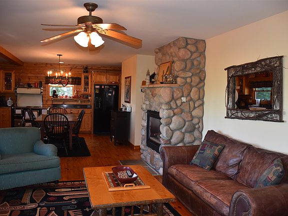 Charming 3 bedroom log cabin on beautiful Pickerel Lake with 345' of waterfront. Features include a spacious great room with views of the lake, sun room, open floor plan, gas fireplace, 2 garages, giant deck with lots of seating, lakeside fire pit, sun platform, beach, and dock. Exceptional lake for skiing, tubing, and swimming. Boat through the nearby channel to Crooked and Burt Lakes, or to your favorite fishing spot. Spend the day skiing or snowboarding from nearby Boyne Highlands, Nubs Nob, or Boyne Mountain. Groomed snowmobile trail system minutes away. Private setting close to 1000 acres of state land. Offered mostly furnished.
