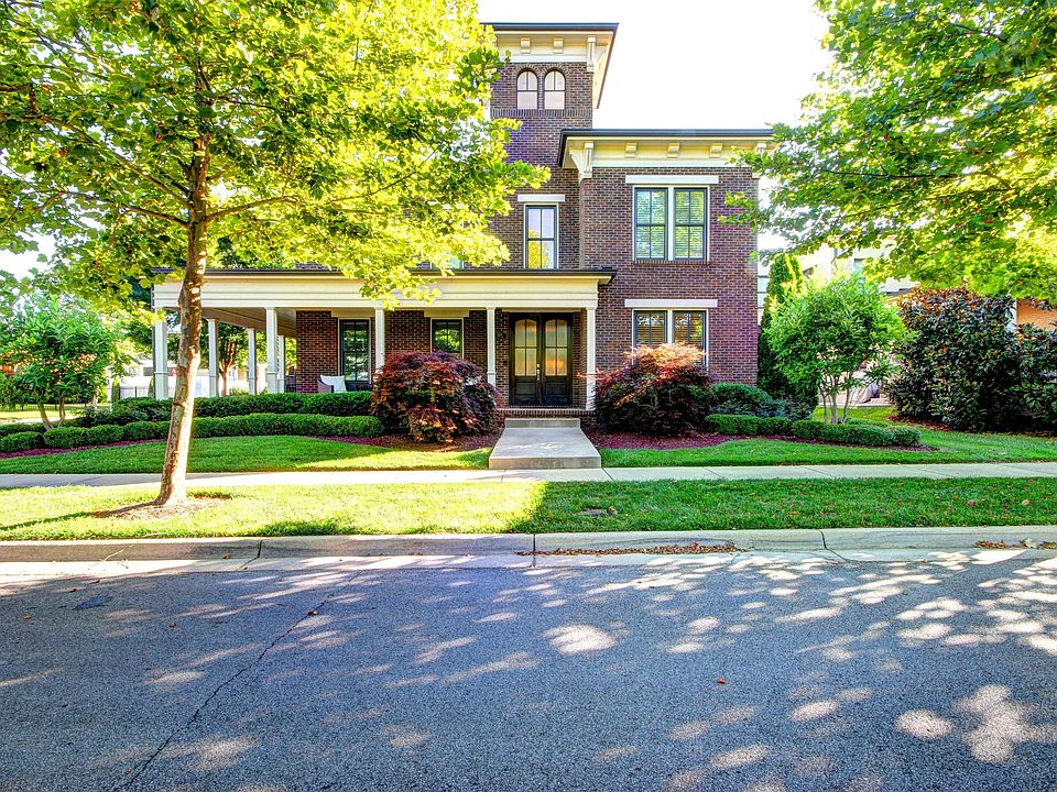 Welcome to 9201 Bergamot Drive. This comfortably elegant home features timeless details and custom finishes throughout. Situated on a corner lot, this home overlooks the Bergamot pool and park. You'll love the wraparound covered porch where you can spend endless hours enjoying the view and your community. As you enter the front door, you'll notice the gorgeous hardwood floors, high ceilings, spacious rooms, and exquisite millwork. The foyer leads to the great room which features a gas fireplace and custom bookshelves. To the right of the front door, there is an office with double doors. The home features a chef's kitchen with a Viking Professional 6-burner cooktop, Viking refrigerator, Viking microwave/oven/warming drawer, beverage fridge, wine refrigerator, grand island with seating for at least 4, and white cabinetry with accent lighting and under-mount lighting. The spacious dining area overlooks the screened-in terrace. There are also two pantries, one of which is a walk-in. The mud room that leads to the garage has a leaded glass window and hooks for coats. The large laundry room has a folding table, utility sink, and cabinets. The exquisite first floor master bedroom features a double tray ceiling, custom shelves, and two walk-in closets. The master bathroom has separate vanities and a large walk-in shower with multiple shower heads including a rain head. The bathroom's custom tile work is spectacular, and the floors feature radiant heat. Rounding out the first floor is a half bath with copper sink in a modern cabinet. Upstairs, there are three bedrooms, all featuring custom closets. The ensuite bedroom features an adjacent tower room which could be used as either an office or a flex room. The finished basement houses a fifth bedroom, full bathroom, exercise room, wet bar with beverage refrigerator, and a large family room with an entertainment center. For your storage, there are two large unfinished areas which are also situated in the basement. A stairwell from the basement to the garage makes moving easier. The 2.5 car garage has storage cabinets and a work area. Outdoors, there is a remote-controlled screened-in terrace with a built-in grill, green space, and a brick patio with under-mount remote-controlled LED lights on brick columns. This home features Closets by Design in every closet, custom plantation wood shutters, built-in speakers throughout the first floor, porch, and basement, 3-zoned HVAC, and fibre optic. The seller is offering a one-year home warranty.