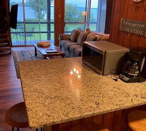 Panoramic Views of Big Pelican Lake, one of Central MN's Premier Lakes. Fully furnished Condo for sale, granite counters, LVP Flooring, tiled bath floor and shower surround. Currently in BP Resort rental pool.