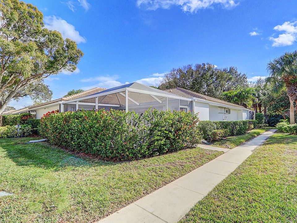 Welcome to your charming one-story villa nestled in the heart of Palm Beach Gardens! This immaculately maintained home offers a serene retreat with modern comforts and convenient amenities.Step into a beautifully updated living space featuring stunning wood flooring that flows seamlessly throughout the expansive living areas, kitchen, and bedrooms. The spacious interior is complemented by a fully renovated 2023 bathroom boasting a custom double vanity and shower, providing both luxury and functionality. Welcome to your charming one-story villa nestled in the heart of Palm Beach Gardens! This immaculately maintained home offers a serene retreat with modern comforts and convenient amenities.