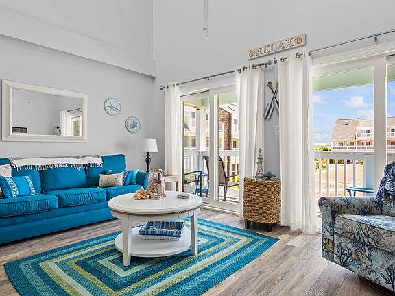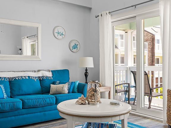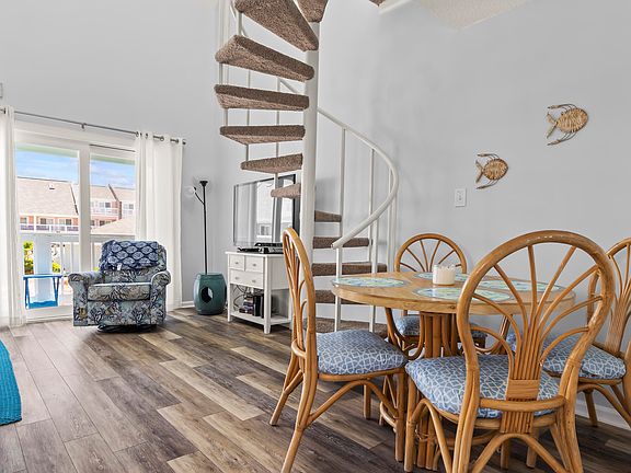 Whether you are looking for your next investment or ready to embrace coastal living... this property has everything you need. This beautifully updated 2 bedroom 2 bathroom is situated perfectly to overlook one of the outdoor pools from the balcony! It includes stainless steel appliances, LVP flooring throughout, and comes fully furnished! Located at the end of building G so it is quieter than most places in the building. Only neighbors on one side of the unit and is the shortest walk to the indoor / outdoor pool, fitness room, grills and picnic tables. There is a tennis court on the grounds along with a second outdoor pool right next to the beach access.The primary bedroom has a Queen bed and a twin bunk bed. Spiral stairs lead to the loft bedroom, which has a vaulted ceiling and sky light, a Queen bed and a twin bed with a trundle bed. The home can sleep a total of 10 people if you include the pull out couch in the living room. It is just a short walk to the private beach access.