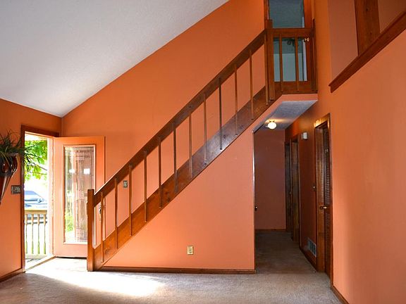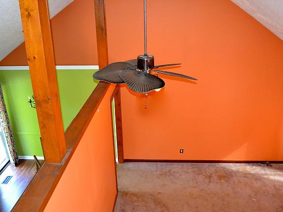Don't miss out on this 1 1/2 story 3 BR 2 Bath Contemporary home with an attached garage. Move right in ! Fresh neutral off white paint throughout! Living room and kitchen have vaulted beamed ceiling and has laminate wood-like flooring. Bedrooms are carpeted. There are 2 bedrooms and 1 full bath on first floor and a bedroom and full bath on 2nd floor. Either floor can be the primary bedroom. Off the 2nd floor bedroom is a deck to overlook the private large backyard. The lot size is .44 per PVA and is fully fenced. There are 3 outside porch / deck features to enjoy.... Covered front porch, 2nd floor deck off bedroom and Large deck overlooking almost 1/2 private acre. Seller has made many updates to property! Stove, Refrigerator, Windows, Gutters, and Fencing to mention a few. Total list available for review. Great convenient location on a cul-de-sac. Extra storage above garage.
