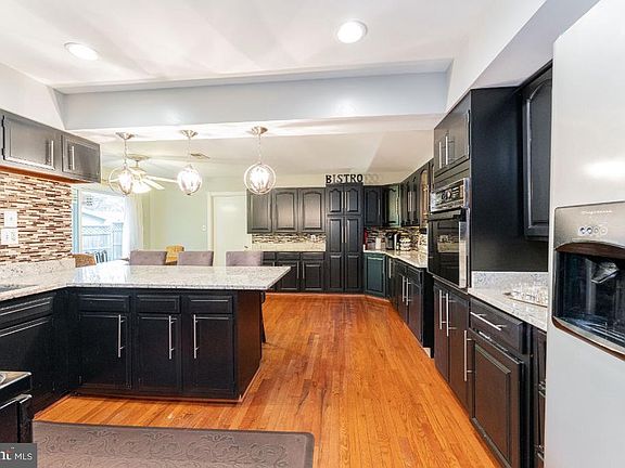 This beautiful 5 bedroom Framingham model home is situated on a .39 acre corner lot located in Laurel's amenity filled Montpelier Community, which includes a private community pool, tennis and basketball courts, trails, playground, soccer, and baseball fields. The inviting foyer opens to a large, light-filled living room with wood burning fireplace and elegant stone surround, hardwood floors (which continue through the home!), and large bay windows. The family room adjoins a gorgeous kitchen (remodeled this year!), with expansive cabinetry, extended countertop for dining, newer stainless appliances, wall oven, new slim fitted Whirlpool microwave, and recessed lighting. The kitchen opens to an adjoining dining area that creates the perfect ambience for family and social gatherings, along with sliding glass doors to the patio. On the other side of the house you will find the spacious primary suite with a fully remodeled bathroom, as well as an additional bedroom, also with a remodeled bathroom. Both bathrooms have granite countertop vanities, and stylish tiled flooring. Upstairs, there is a central foyer opening to three large bedrooms including a second primary bedroom with a bump out perfect for an office space as well as an extra large walk-in closet. Two additional generously sized bedrooms share another full bathroom. The house has been freshly painted (please note, the third bedroom will be painted in grey). The HVAC (2019) has been relocated to an upstairs location, behind which there is another large storage area. You'll be amazed!! The house is energy efficient with solar panels, the roof was installed last year, and there is a large fenced backyard and garden with a brick patio perfect for barbecues with your family and friends! The large driveway can accommodate 4 cars, and the two car garage also offers an additional storage area. (The garage is full of furniture in preparation for the sale and move.) Enjoy an easy commute to the Baltimore and Washington DC areas, Fort Meade, NASA, NSA, and public transportation to MARC train and Greenbelt Metro. Don't wait- this house won't last long on the market!