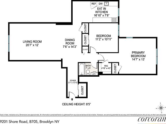 Welcome to 9201 Shore Road, one of the most prestigious addresses in the area, offering unparalleled luxury with 24-hour concierge service. This rarely available 2-bedroom, 1-bathroom apartment is situated on the top 7th floor, providing an abundance of natural sunlight. Step into this exquisite residence and be greeted by a generously sized living and dining area, perfect for both entertaining and relaxing. The eat-in kitchen boasts sleek stainless steel appliances and an abundance of cabinetry, catering to all your culinary needs. The two spacious bedrooms offer comfort and style, with the primary bedroom featuring two walk-in closets and an impressive amount of additional storage throughout the apartment. Enjoy the bright, airy atmosphere created by large windows and high ceilings. Convenience is at your doorstep with the express bus stops X27 and X37 just a short distance away, providing easy access to the city. Sorry pets are not allowed Please note, this is a cooperative apartment, and board approval is required board fees are paid by the owner. Don't miss this rare opportunity to experience luxurious living at 9201 Shore Road.