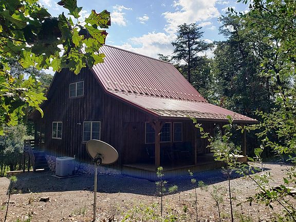 Cabin for sale on almost 5 wooded acres along Stone Creek Ridge. 3 bedrooms, 2 & 1/2 baths plus loft. 1585 Square feet of finished space. Full walk-out basement with finished laundry and 3/4 bath. Finish the basement for an awesome gameroom! Easy drive to Raystown Lake or Penn State University. This can be your full-time residence, second home, or vacation rental. Vaulted ceilings with wood beams, tongue & groove walls and pine flooring. Barn-style doors with heavy metal hardware. Propane heat and central air conditioning. Full walk-out basement with finished bathroom and laundry. Full covered front porch. Full covered (and screened) back porch. Relax around the campfire. Watch the wildlife. Just breathe. . .