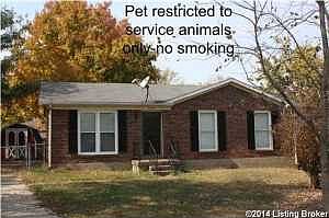 Property is currently occupieddo not disturb tenant. Home is pet restricted and no smoking. All brick ranch on cul de sac only minutes to the Snyder Freeway, shopping & restaurants. Located in Crestwood Elementary, South Oldham Middle & South Oldham High School district. Generous sized kitchen has three year old cabinets, counter tops, sink & dishwasher. Range & refrigerator included. Full sized laundry room. Partially fenced rear yard has detached shed for additional storage, plus attached shed. Tenant pays all utilities. Owner/Agent