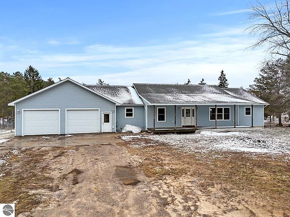 Spacious 6-bedroom, 2.5-bath home on 2 acres, ideally located between Mesick & Traverse City! With approximately 3,800 sq. ft. of total finished living space, this home offers a beautifully designed main floor featuring a primary suite with a private bath including soaking tub, and walk-in closet, plus main floor laundry room and additional bedroom. The kitchen is a chef’s dream with an oversized island, built in double oven, and a huge pantry. The finished basement boasts in-floor heat, 4 bedrooms, a full bath, and 2 family/rec rooms. Enjoy central A/C, abundant storage, new carpet in several rooms, and new overhead garage doors. The attached 28x34 garage provides ample space, while the fenced backyard and small barn make this property perfect for animals.