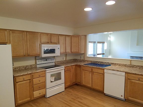 Completely remodeled inside and out 1 yr ago - upgrades throughout, almost brand new property - very nice. New carpet, cabinets, counter top, tub, shower, tile, wood floors, appliances, lights, etc. A/C, 2 car garage with opener, 2" wood blinds, 3+1 bedroom down, cathedral ceilings, covered deck, new driveway and sidewalk, garage door, sprinkler system, new Hardie Board siding, soffit, gutters on exterior, Corner lot, fenced, Chatfield High School. 2 year lease