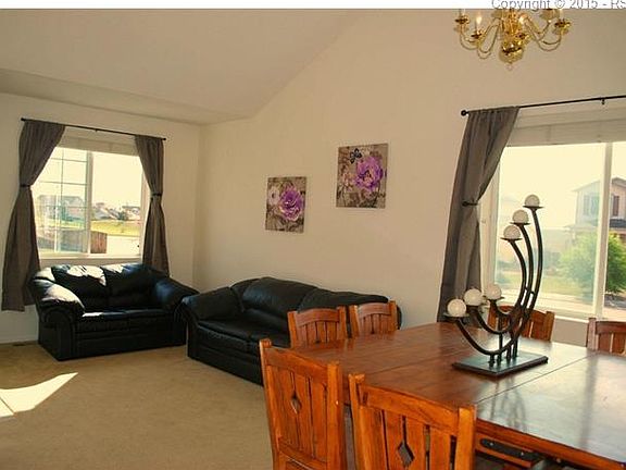 Large corner lot in beautiful Woodmen Hills. Very well taken care of home with only 1 owner. Large entry living room to walk into with vaulted ceilings. Roomy kitchen with center island. Cozy family room. New paint and new tile in the kitchen and laundry room. Master bedroom has 5pc bath and views of Pikes Peak. Enjoy some golfing at Antler Creek Golf Course around the corner along with all of the amenities of Woodmen Hills Recreation Centers.