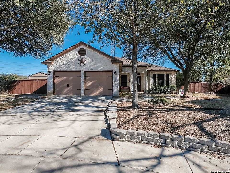 Beautiful single story located in the highly desired area of Helotes! This 4-bedroom 2- bath home is a split floor plan w/ large master bath and closet! Fourth bedroom is perfect for office space. A spacious kitchen features an island, breakfast bar, built in appliances, solid surface counters, open to family & breakfast area! Large family room features a fireplace. This property sits on 0.67 acres at the end of a quiet cul-de-sac. It is a MUST SEE!!