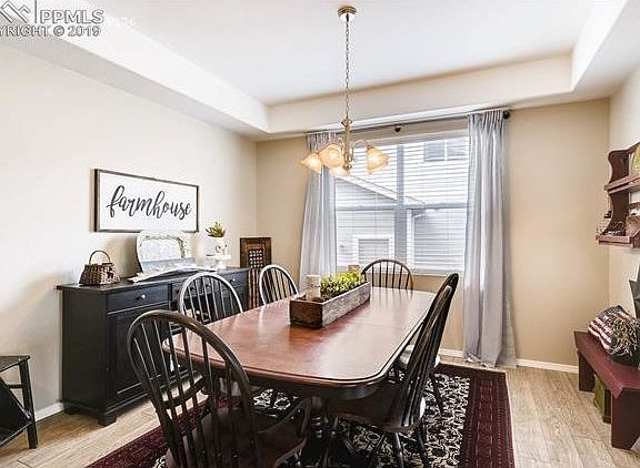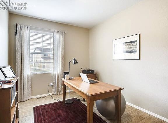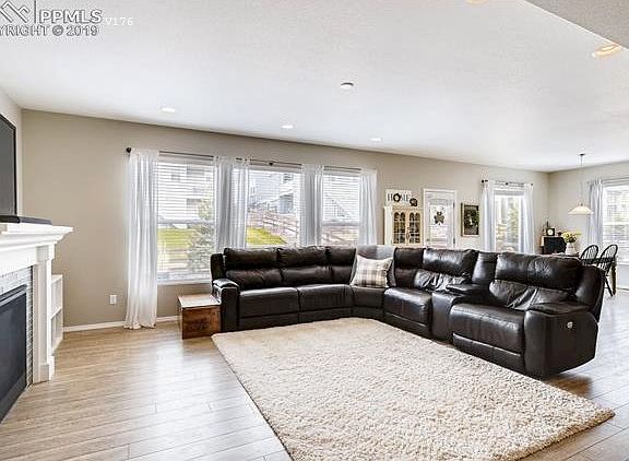 Gorgeous open concept home w/ beautiful modern finishes. Located in the prestigious Academy School District 20. Main level private office just off the entry, formal dining room w/ arched entry. Spacious living room w/ gas fireplace, wall of windows flood the space w/ tons of natural light. Kitchen boasts white cabinetry, quartz counter tops, GE slate appliances, gas range and double oven. Upstairs features, loft area, spacious master, spa like master bath, three add'l beds, shared bath and laundry. Finished basement.... Stunning like new home located in the coveted Wolf Ranch community. Bright and open main level is perfect for entertaining family and friends. Enjoy the beautiful easy to maintain laminate wood flooring, neutral paint and sleek lighting throughout. Formal dining boasts trey ceilings and arched entry. Upstairs w/ the perfect loft area, spacious master with stunning spa like master bath and beautiful walk in shower w/ rain shower head as well as huge walk in closet. The spacious laundry room is conventionality located on the second floor. 3 additional bedrooms boasts double closets and plenty of storage space. Finished basement with family room as well as rec area, bedroom and full bath. Basement also boasts tons of unfinished storage space. Enjoy the Colorado sunshine in the fully landscaped and fenced back yard with huge patio, fire pit basketball hoop and dog run. The Wolf Ranch community features an exclusive paid membership Rec center with a pool, splash pad, and club house. As well as parks, nearly 10 miles of walking trails, dog park and 11 acre lake area. Close to schools and shopping and entertainment. Wolf Ranch plays host to several community events which include a Summer Concert Series, movie nights in the park, Fall festival just to name a few.