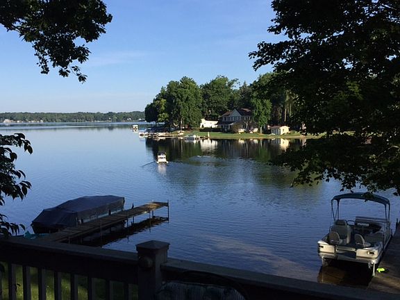 44' of private waterfront on beautiful (& private)Wall Lake located 20 minutes north of Gull Lake in SW Michigan's "Lake Region". First time on the market and pride of ownership is evident throughout this wonderful rustic lodge style Chalet home. 3-4 bedrooms; 3 full baths; main floor laundry; lower level walkout; 2+ car attached garage; custom kitchen (new stainless appliances); center island with pantry; lakeside deck and patio; lakeside wall of windows for magniificent lake views and naturallighting; 44' of sandy waterfront with new dock and excellent fishing, boating, floating, kayaking and an end of the road (very quiet) location. move-in ready. 1-OWNER and move-in ready!
