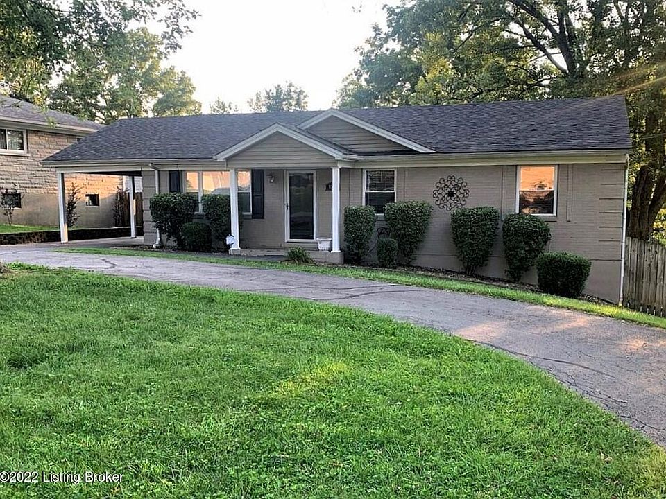 MOVE IN READY!!! Beautiful 3 bedroom ranch with partially finished walkout basement. Fresh paint throughout, new carpet, new water heater and roof is only 2 years old. The first floor primary bedroom features an en-suite, walk-in closet, and sliding door to a private deck. The basement includes an office area that has potential to be a 4th bedroom - with egress. A large back yard includes a privacy fence, along with a huge wood deck. The carport and turn-around drive way offer plenty of room for parking. Convenient location near Gene Snyder and close to shopping, restaurants, and schools. Must see, as this property will go fast! Schedule your showing today!