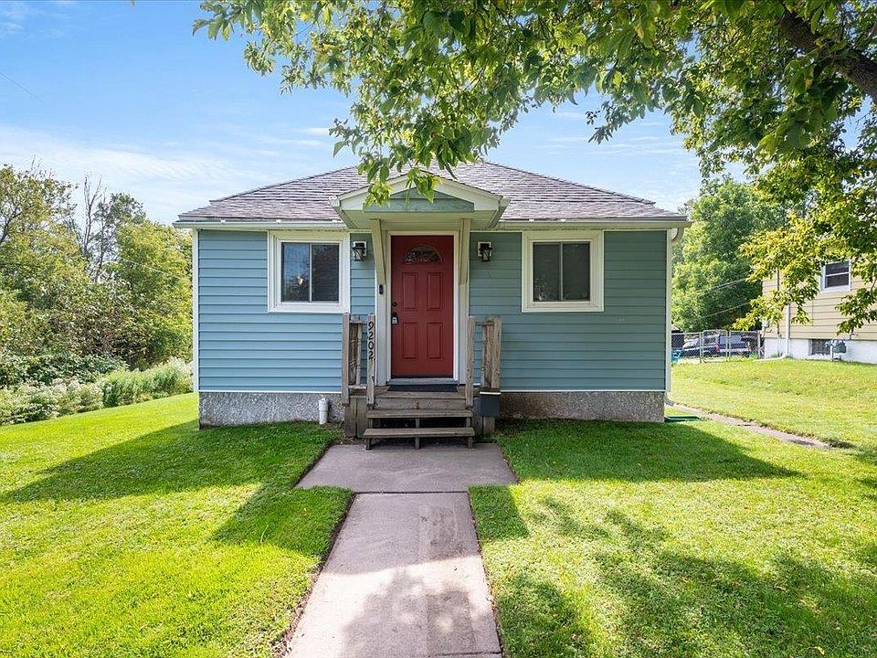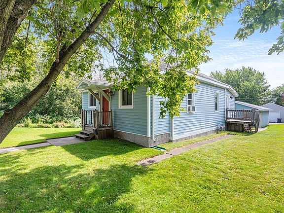 This charming 2-bedroom bungalow has been tastefully updated throughout! The open concept living room and kitchen will impress you. The living room has refinished maple hardwood flooring, newer lighting, and is bright and cozy. The newer kitchen offers maple cabinets, a center island, tiled flooring, a ceiling fan, and newer appliances, with the laundry on the main floor and a new washer and dryer being delivered the 13th. The 2 bedrooms have maple flooring and ample closet space. There is an updated full bath with a jetted tub and tiled surround. Off the mudroom there is a nice sized deck overlooking the backyard and the woods next to the home. There is an oversized newer 24x32 garage that offers extra storage for your toys. Other features include maintenance free siding, newer plumbing, newer wiring, a newer roof, updated mechanicals, and extra parking for a camper or RV. Set at the end of a quiet street near parks and fields, this home is totally move in ready!